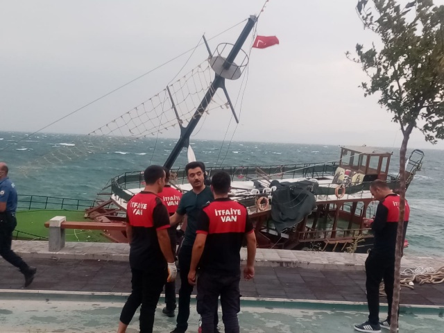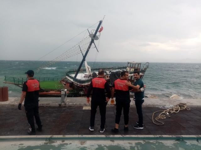 Van Gölü’ne açılan bir gezi teknesi fırtınada karaya oturdu. Korku dolu dakikalar yaşayan 30 yolcu, itfaiye ekiplerince halat yardımıyla kurtarıldı.