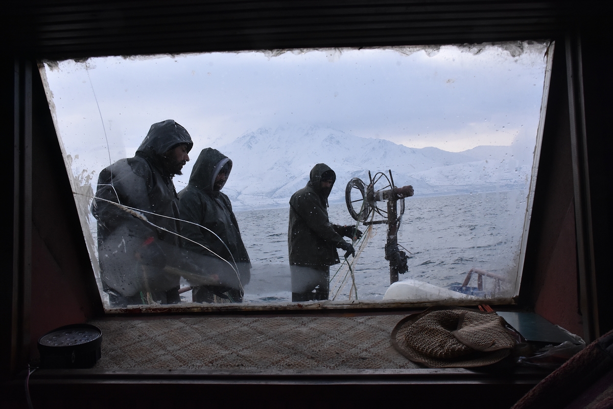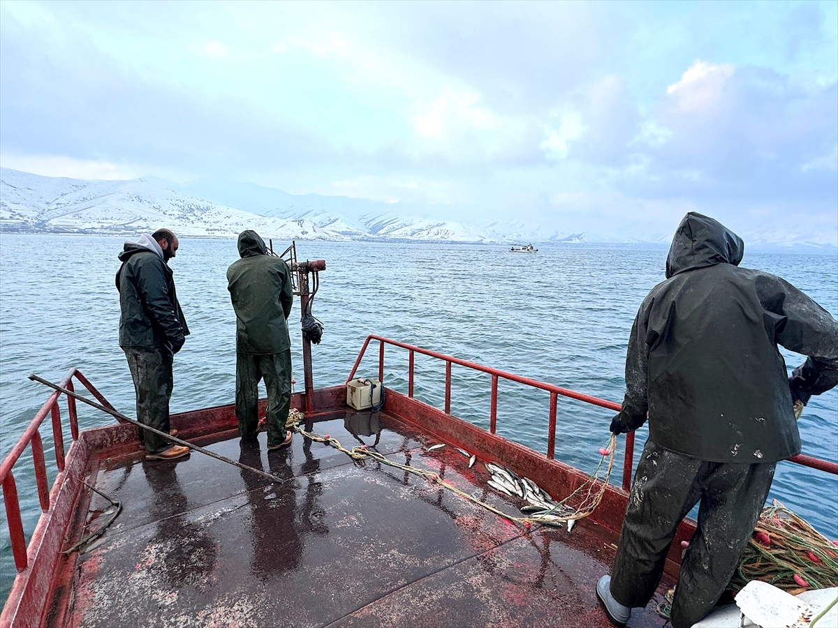 Van Gölü'nde geçimini balıkçılıkla sağlayanlar, kışın dondurucu soğuğa rağmen avcılık faaliyetlerine devam ediyor.