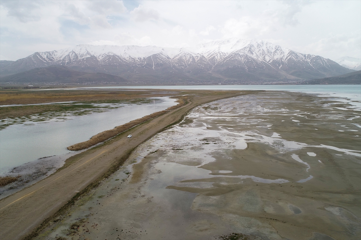 Son yıllarda yağışların azalması ve aşırı buharlaşma nedeniyle Van Gölü'nde yaşanan çekilme, ilkbaharda etkili olan yağışlara rağmen devam ediyor.