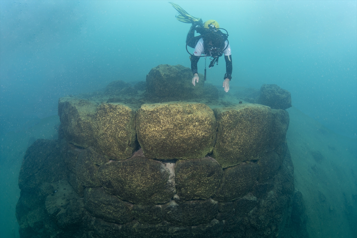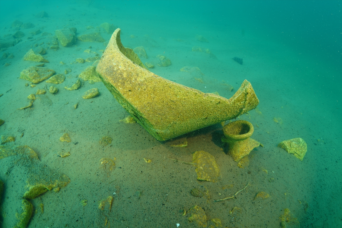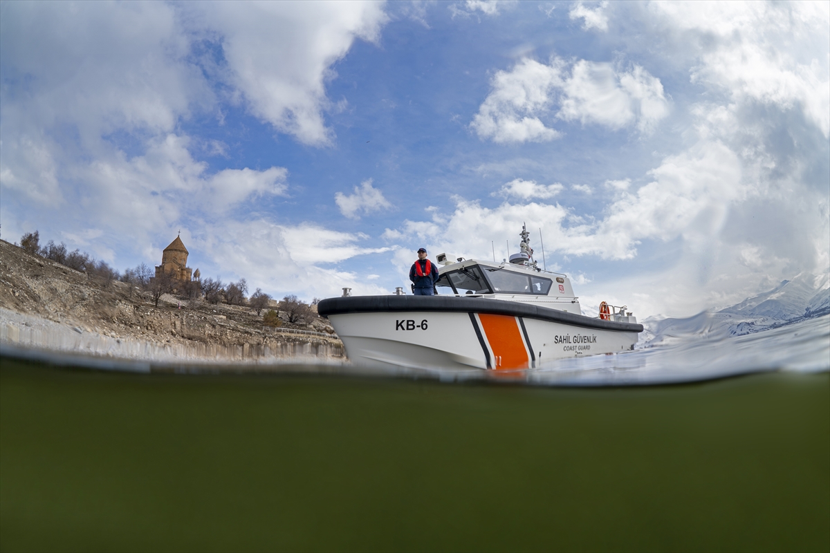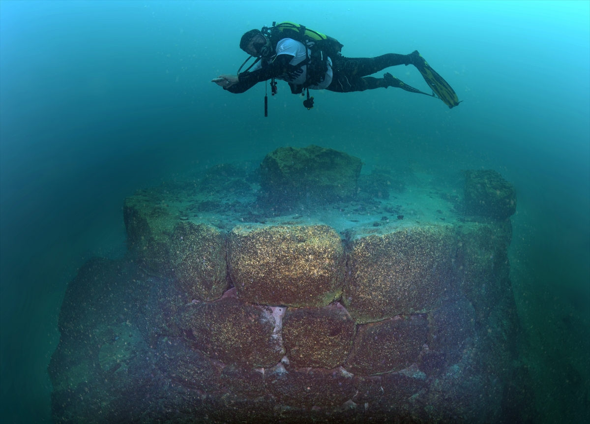Su Altı Görüntü Yönetmeni Tahsin Ceylan, Van Gölü'nde yaptığı dalış sırasında Akdamar Adası kıyısında 15 metre derinlikte bulunan burç benzeri yapı ile duvar kalıntıları görüntüledi.
