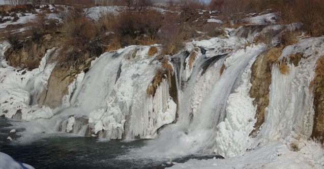 Muradiye ilçesi yakınlarındaki Bendimahi Çayı üzerinde bulunan Muradiye Şelalesi’nin bir kısmı buzla kaplandı. Hava sıcaklığının ocak ayında sıfırın altında 10 dereceye kadar düşmesi, yaz aylarında coşkulu akan suyuyla dikkat çeken Muradiye Şelalesi’nin bir bölümünü buza dönüştürdü.