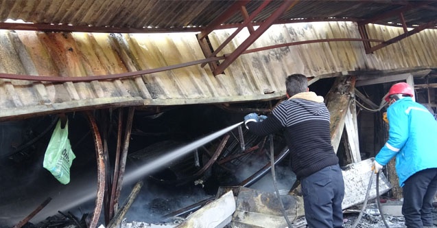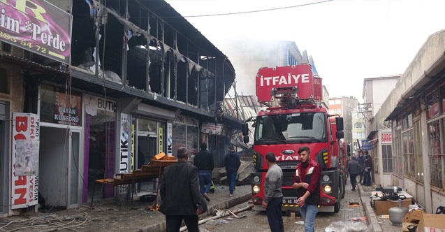 İşyerlerinin yanışını çaresizce izleyen vatandaşlar büyük maddi zarara uğradılar.