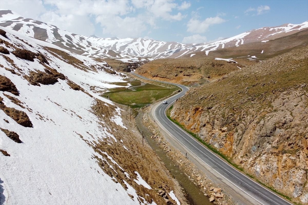 Yükselti ve coğrafi yapının etkisiyle bazı bölgelerde hava sıcaklığında farklılıkların yaşandığı Van'da, Çatak ilçesine bağlı kırsal mahallede hayvanlar merada otlatılırken, 16 kilometre ilerisindeki Bahçesaray kara yolunda metrelerce var.