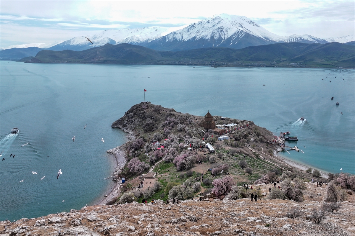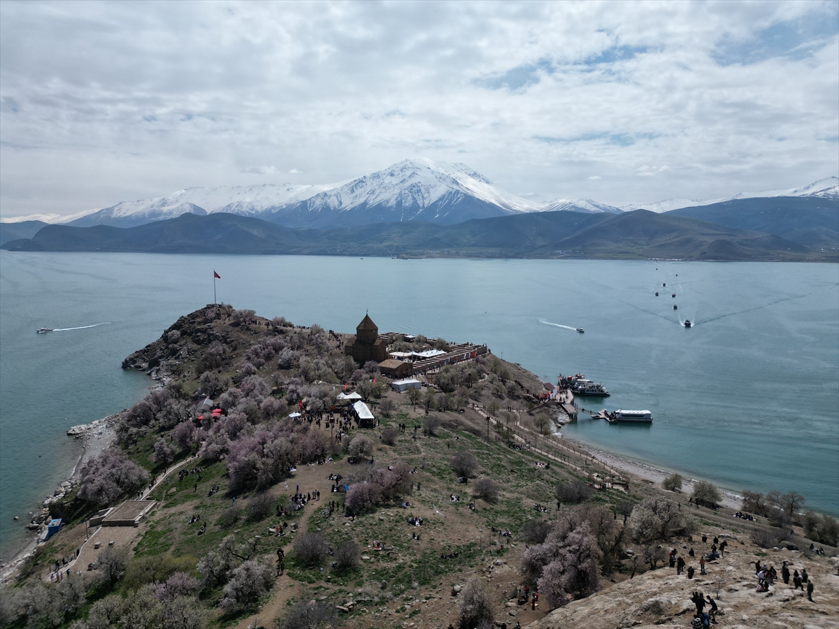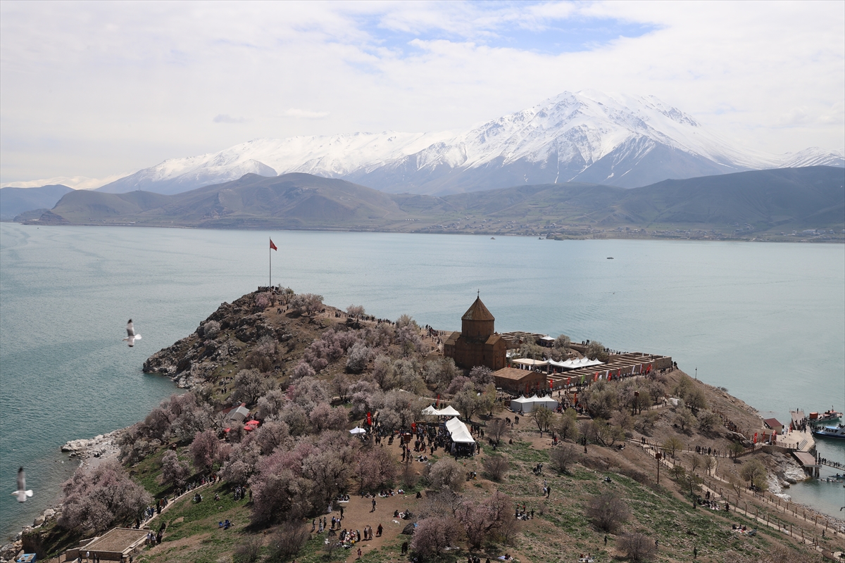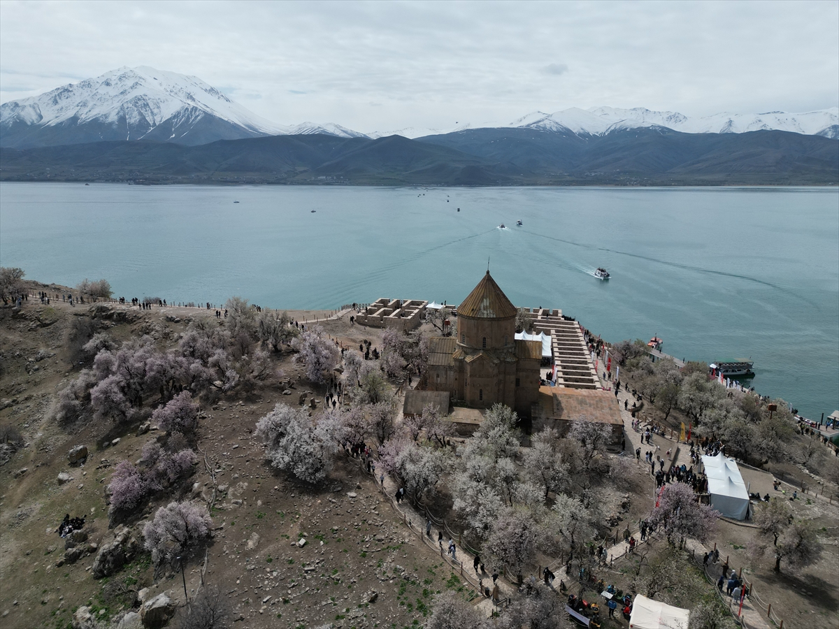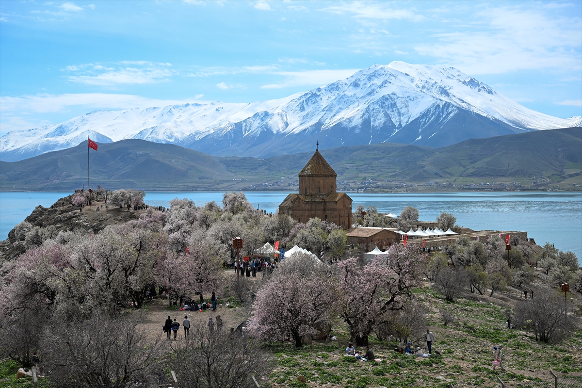 Badem ağaçlarının çiçek açmasıyla baharın tonlarına bürünen Van Gölü'ndeki "Akdamar Adası 3. Badem Çiçeği Festivali"ne ev sahipliği yapıyor.