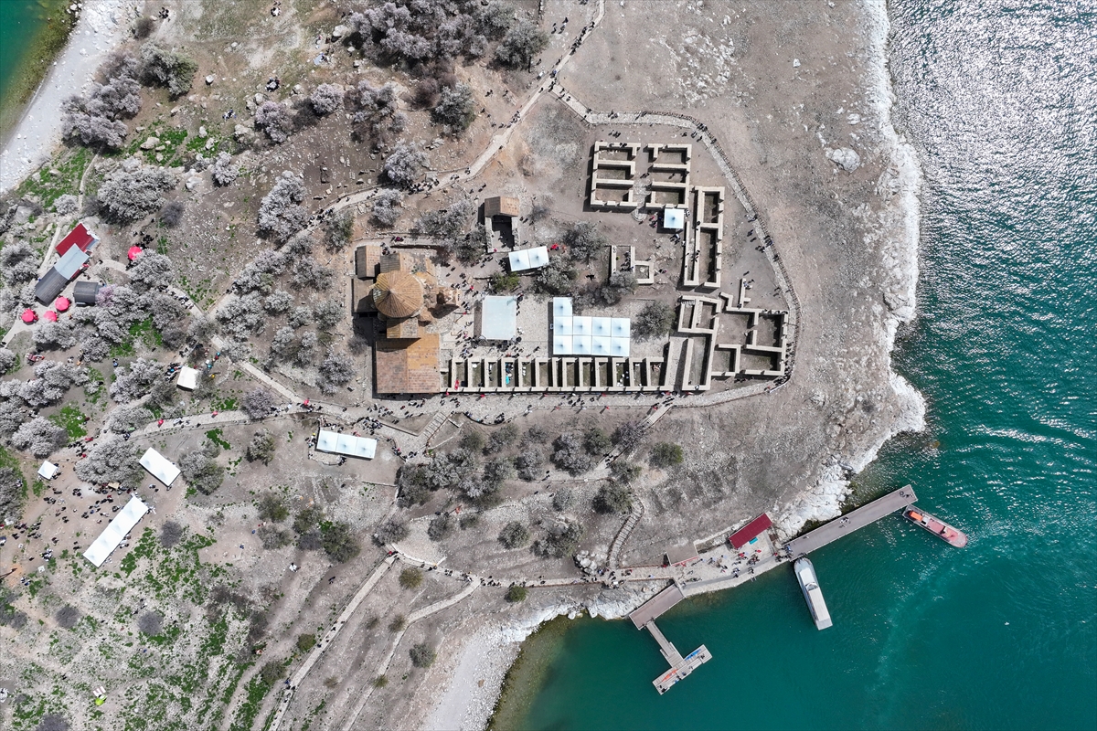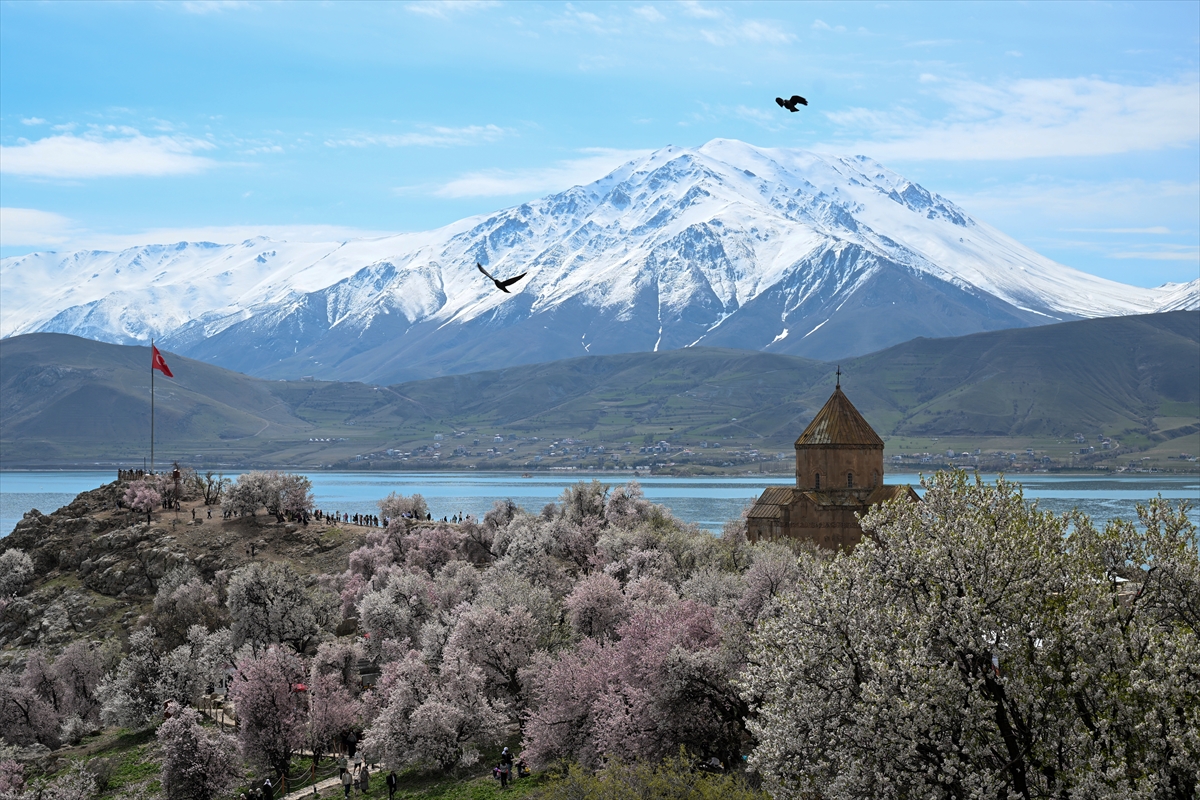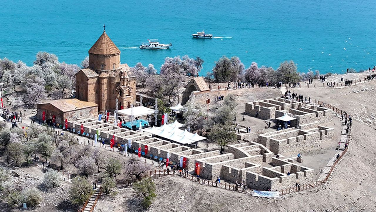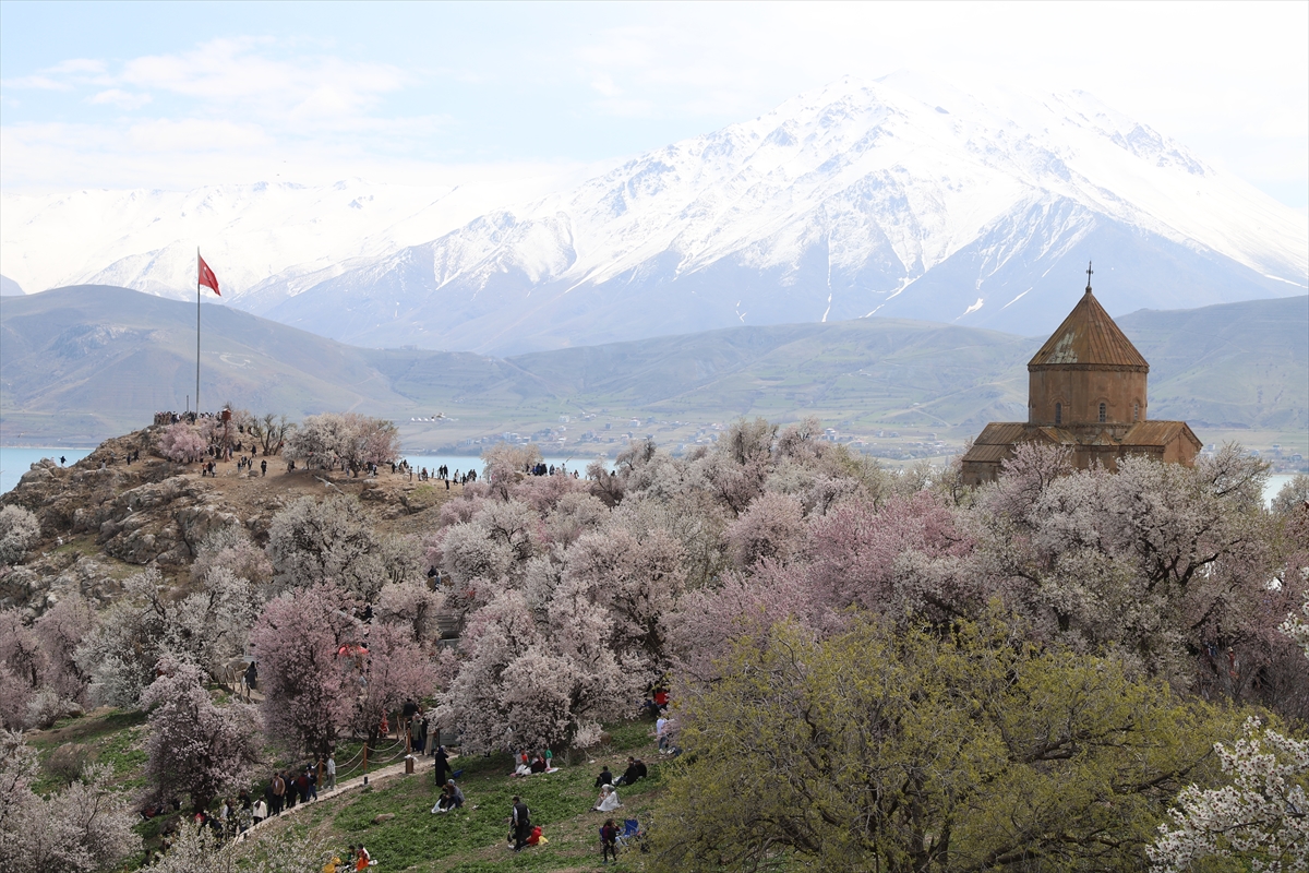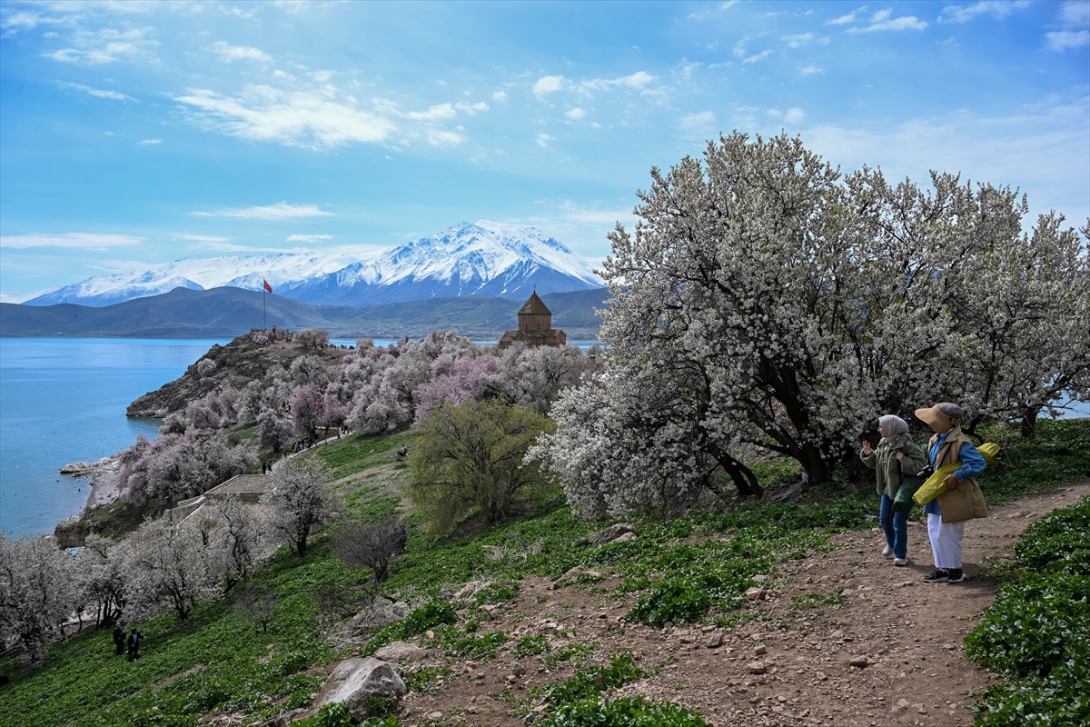 Badem ağaçlarının çiçek açmasıyla baharın tonlarına bürünen Van Gölü'ndeki "Akdamar Adası 3. Badem Çiçeği Festivali"ne ev sahipliği yapıyor.