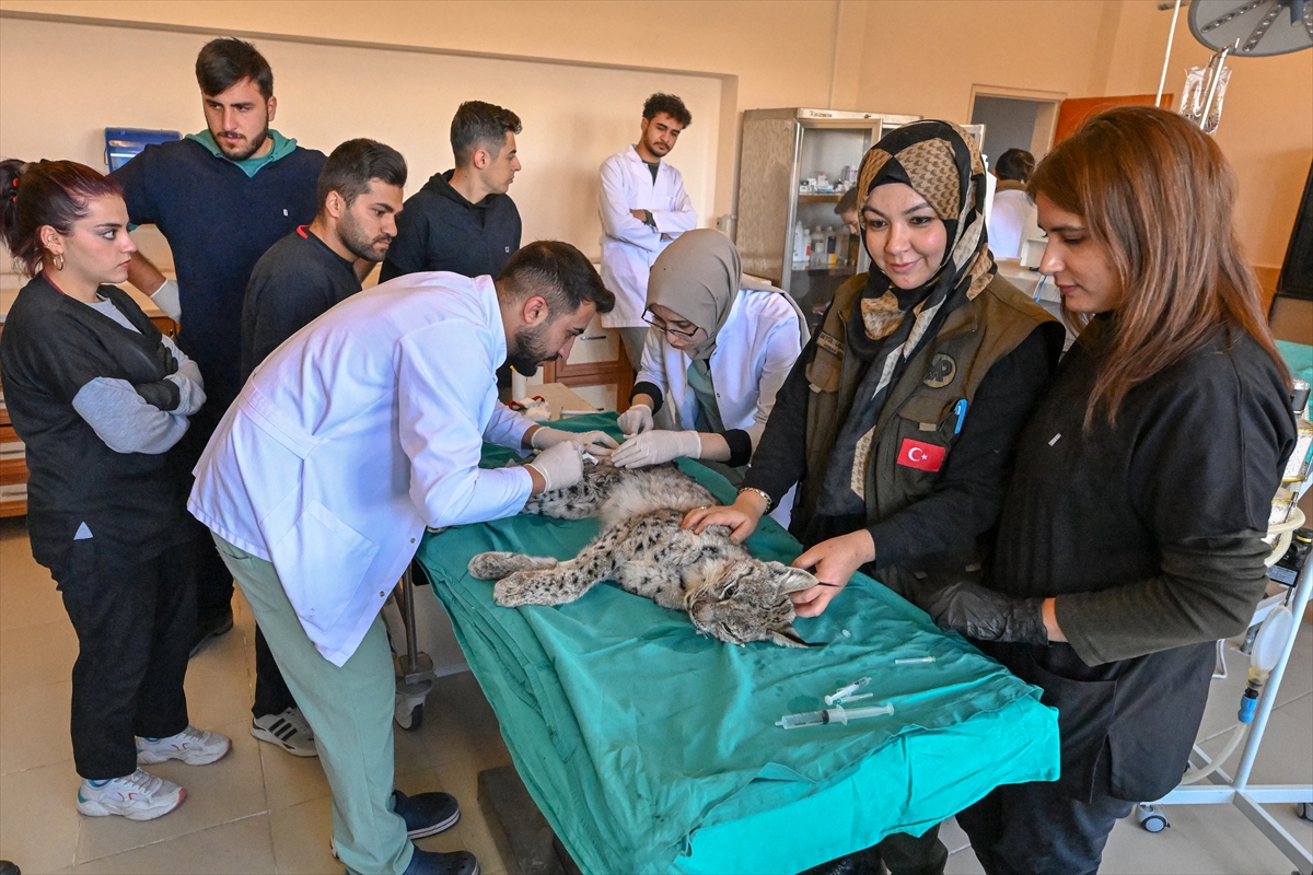 Van'ın Çatak ilçesinde dağlık alanda vatandaşlar tarafından yaralı halde bulunarak Doğa Koruma ve Milli Parklar (DKMP) 14. Bölge Müdürlüğü görevlilerine teslim edilen vaşağın tedavisi için ekipler seferber oldu.