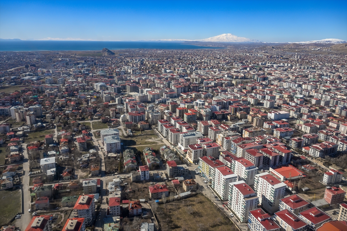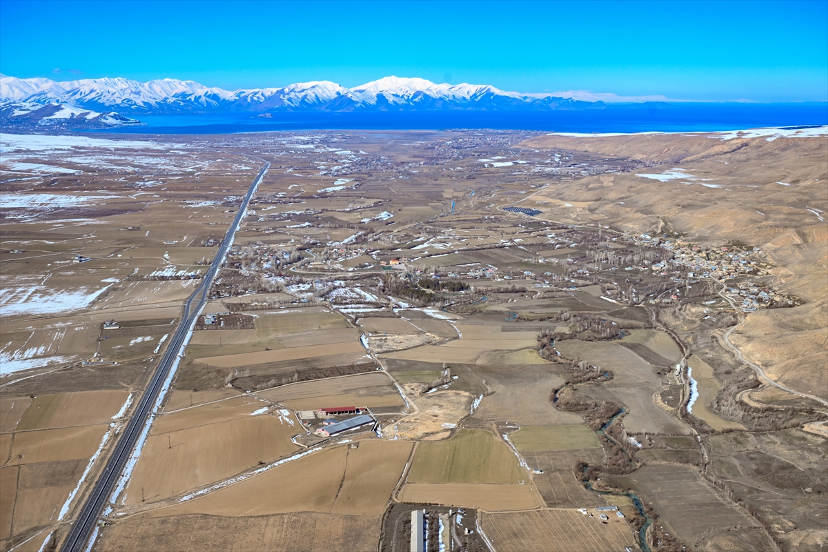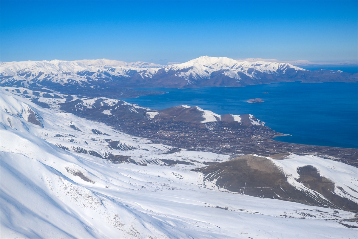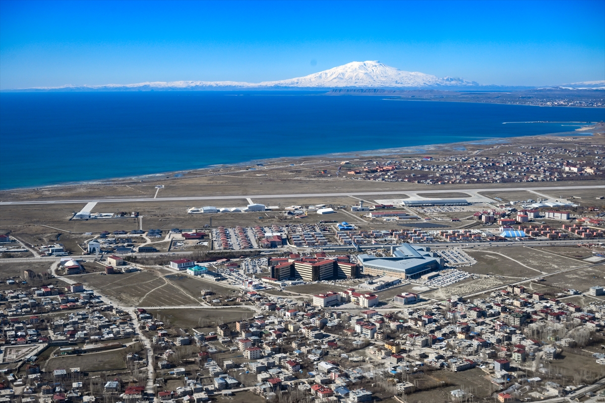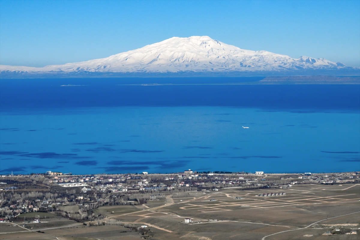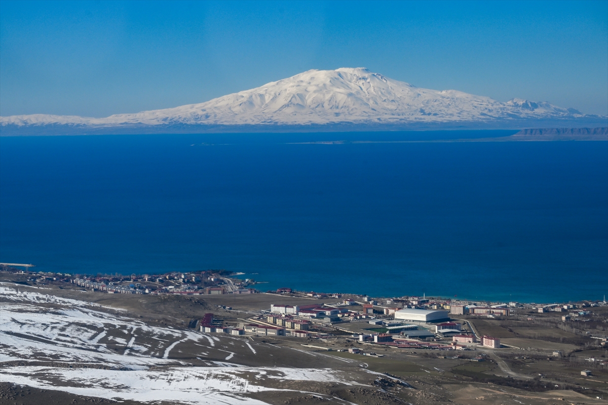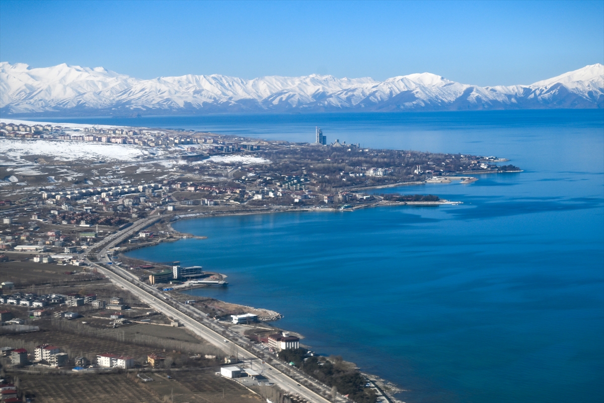 Birçok medeniyete ev sahipliği yapmış olan Van'ın tarihi ve doğal güzellikleri helikopterden fotoğraflandı. Fotoğrafta Van Kalesi, Van Gölü ve Süphan Dağı görülüyor.