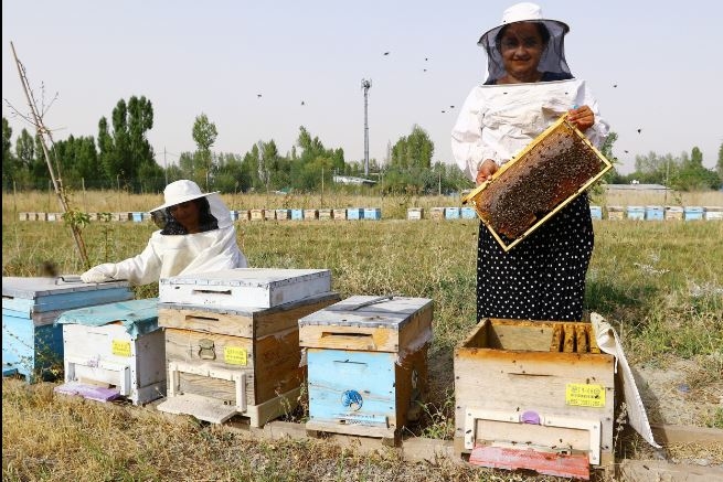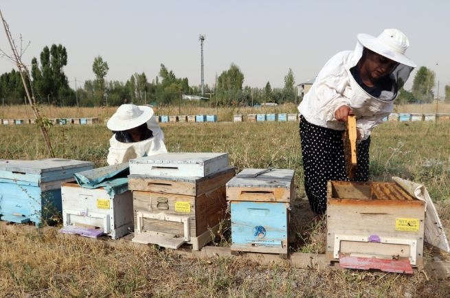 Vanlı kadın arıcılardan bal hasadı