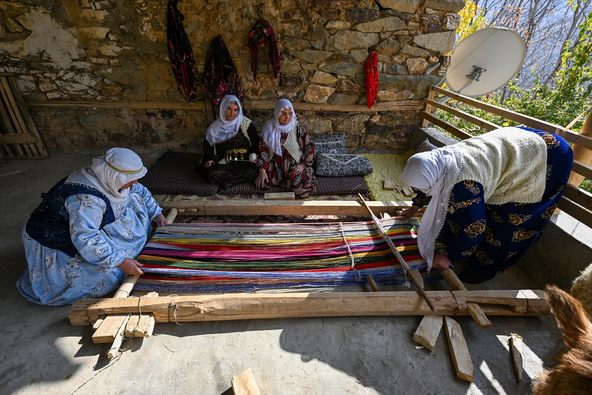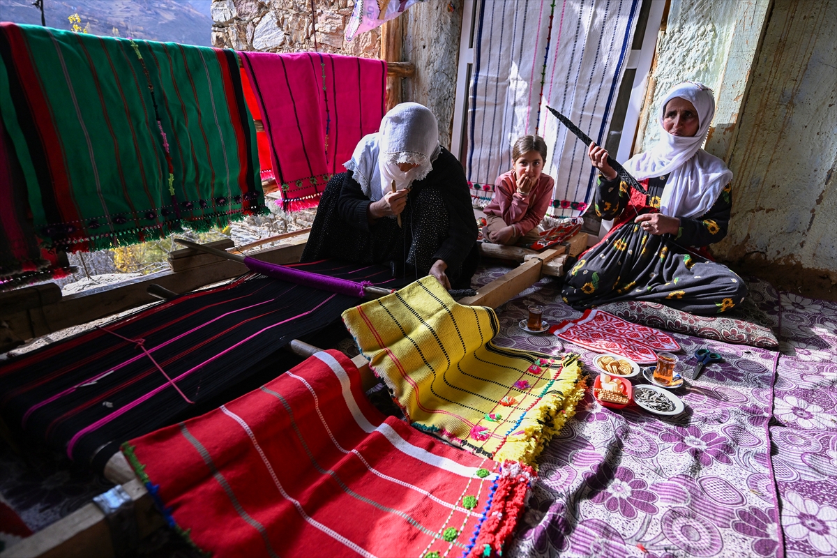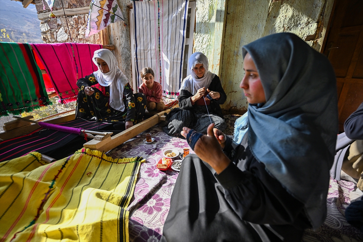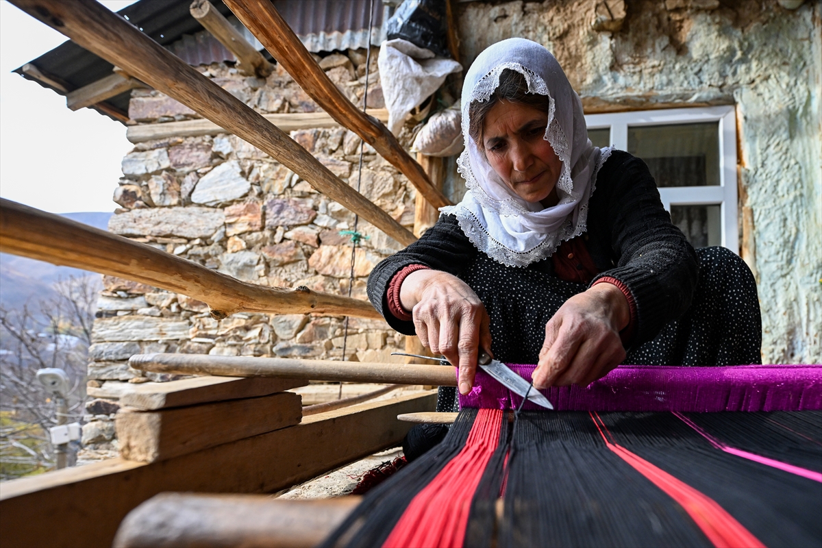 Van'ın Bahçesaray ilçesindeki kırsal mahallede yaşayan kadınlar, evlerinde kurdukları geleneksel tezgahlarda asırlık dokuma kültürünü yaşatmaya çalışıyor.