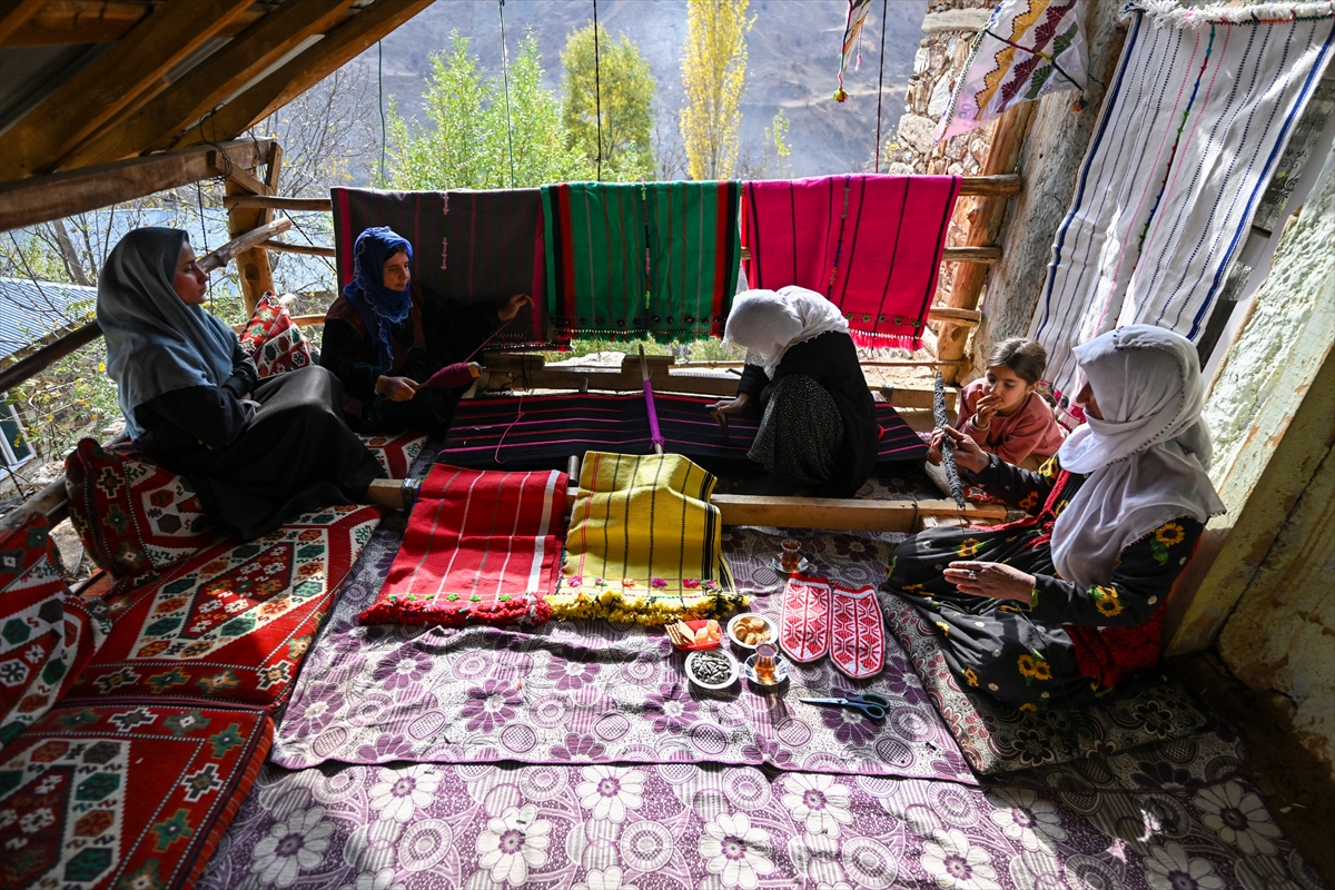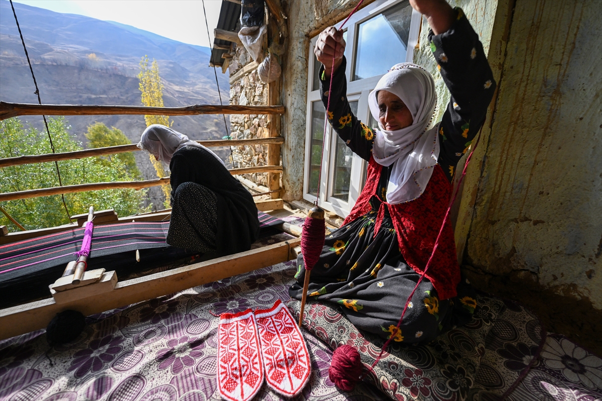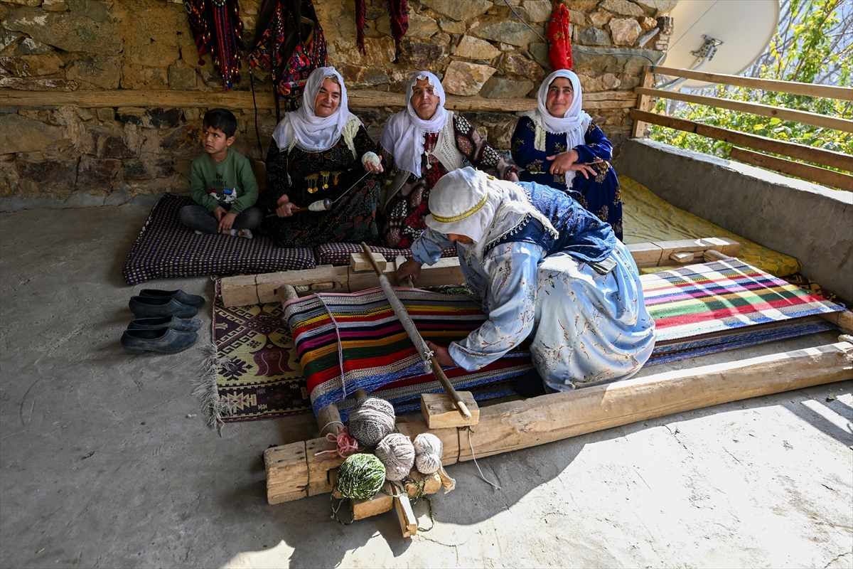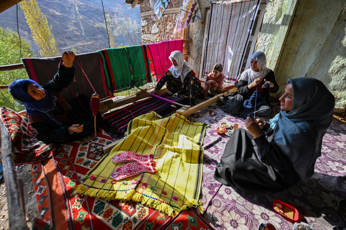 Van'ın Bahçesaray ilçesindeki kırsal mahallede yaşayan kadınlar, evlerinde kurdukları geleneksel tezgahlarda asırlık dokuma kültürünü yaşatmaya çalışıyor.