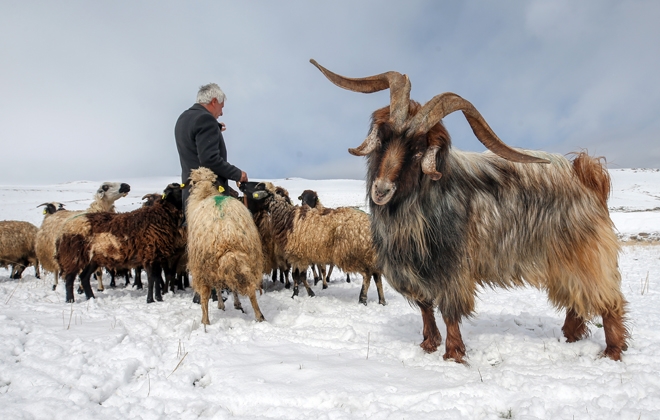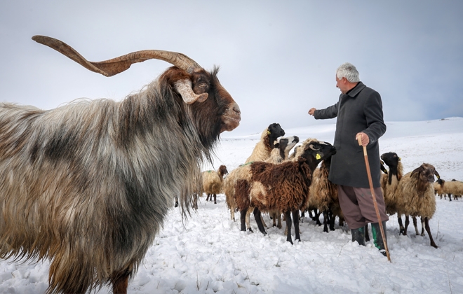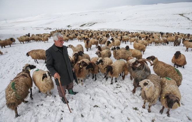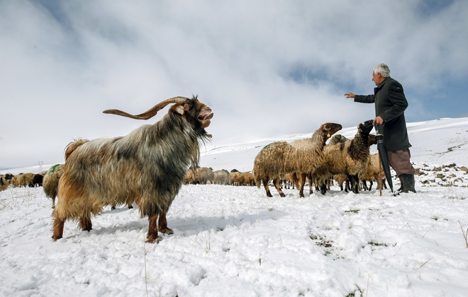 Koyunlarını yaylaya çıkarmaya hazırlanan besici Sevdin Çaksoy, bu yıl kış mevsiminin uzun sürmesi nedeniyle yaylalara daha geç çıkacaklarını belirtti.(AA)