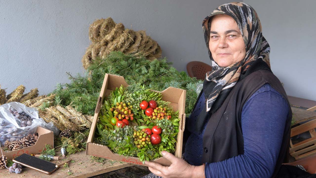 Bölgede çelenk üretimi ve ihracatı yapan bir firmanın sorumlusu Ulaş Aktürk, "Çelenk işini 2005 yılından beri yapıyoruz. Evlerin önüne sabah meyveler ve bitkiler dağıtılıyor. Akşamüzeri, öğleden sonra 14.00- 15.00 gibi yapılan çelenkler toplanıyor. Depoya getiriliyor. Depoda paketleniyor. Firma olarak bizim 100'e yakın ev var. Kadınlar bitki ve meyveleri sarıyor, öğleden sonra topluyoruz. Yaklaşık 2 günde bir TIR'la Hollanda ve Almanya'ya gönderiyoruz. Köydeki neredeyse hemen her evde 25 Ağustos'ta başlayıp aralık ayının ilk haftasının sonuna kadar kadınlar ve bazı erkekler bu işi yapıyor" dedi.