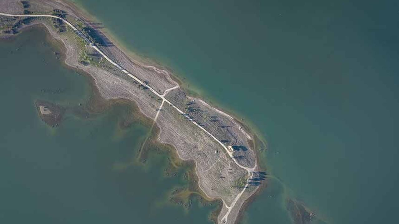 Yaz dönemindeki sıcaklık ve kuraklığın etkisiyle suların çekildiği havzada gün yüzüne çıkan kara parçaları, etkili olan yağışların ardından tekrar su altında kaldı.