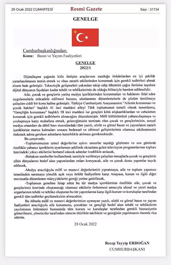 Resmi Gazete'nin bugünkü sayısında Cumhurbaşkanı Recep Tayyip Erdoğan'ın imzasıyla, FOX TV'nin son haftalarda tartışma konusu olan 'Maske Kimsin Sen?' programına ilişkin genelge yer aldı.