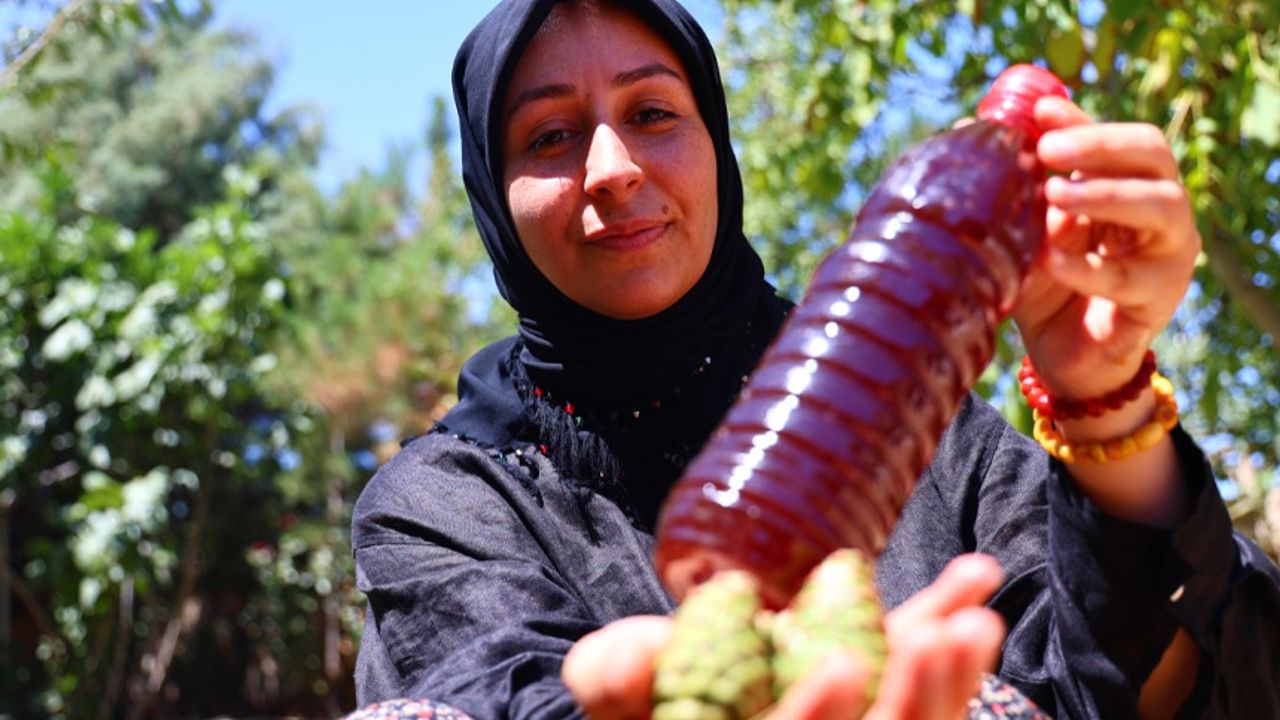 Elazığ’ın Yedigöze köyünde yaşayan iki çocuk annesi Tuba Bahçeci, 7 yıldır çeşitli doğal ürünler yapıyor. 50 farklı sabun çeşidinin yanı sıra astım, KOAH ve öksürük gibi rahatsızlıklara iyi geldiği bilinen kozalak şurubu hazırlayan Bahçeci, özellikle sigara kullananlara bu ürünü tavsiye ediyor.