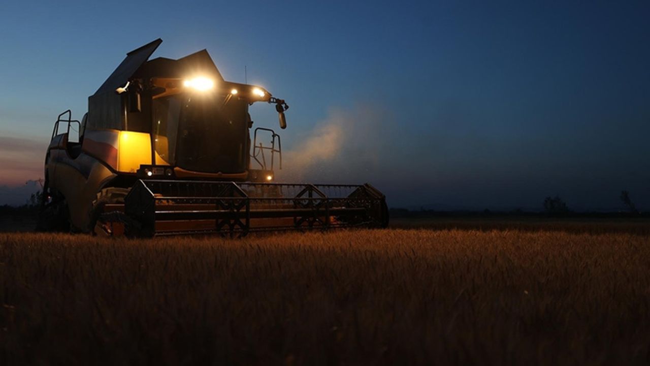 Gün batımına yakın mesailerine başlayan biçerdöver operatörleri yoğun mesailerini sürdürüyor.