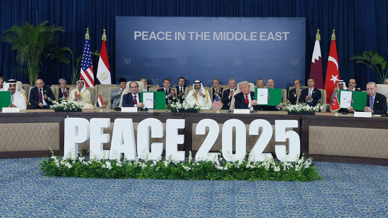 Mısır’ın Şarm eş-Şeyh kentinde düzenlenen Gazze’deki ateşkesin korunması ve barış amacıyla düzenlenen "Barış Zirvesi" kapsamında Cumhurbaşkanı Recep Tayyip Erdoğan, ABD Başkanı Donald Trump, Mısır Cumhurbaşkanı Abdulfettah es-Sisi ve Katar Emiri Şeyh Tamim bin Hamad Al Thani, Gazze için "Niyet Belgesi" imzaladı. ABD Başkanı Trump, imza töreni öncesi yaptığı açıklamada zirvede bir araya gelen ülkelere dikkat çekerek, "Muhtemelen servet ve güç bakımından bugüne kadar bir araya gelmiş en büyük ülkeler topluluğu ile karşı karşıyayız. Bunun bir parçası olmak benim için bir onur. Şimdi, birçok kural, düzenleme ve diğer unsurları kapsayan, oldukça kapsamlı bir belge imzalayacağız" dedi.