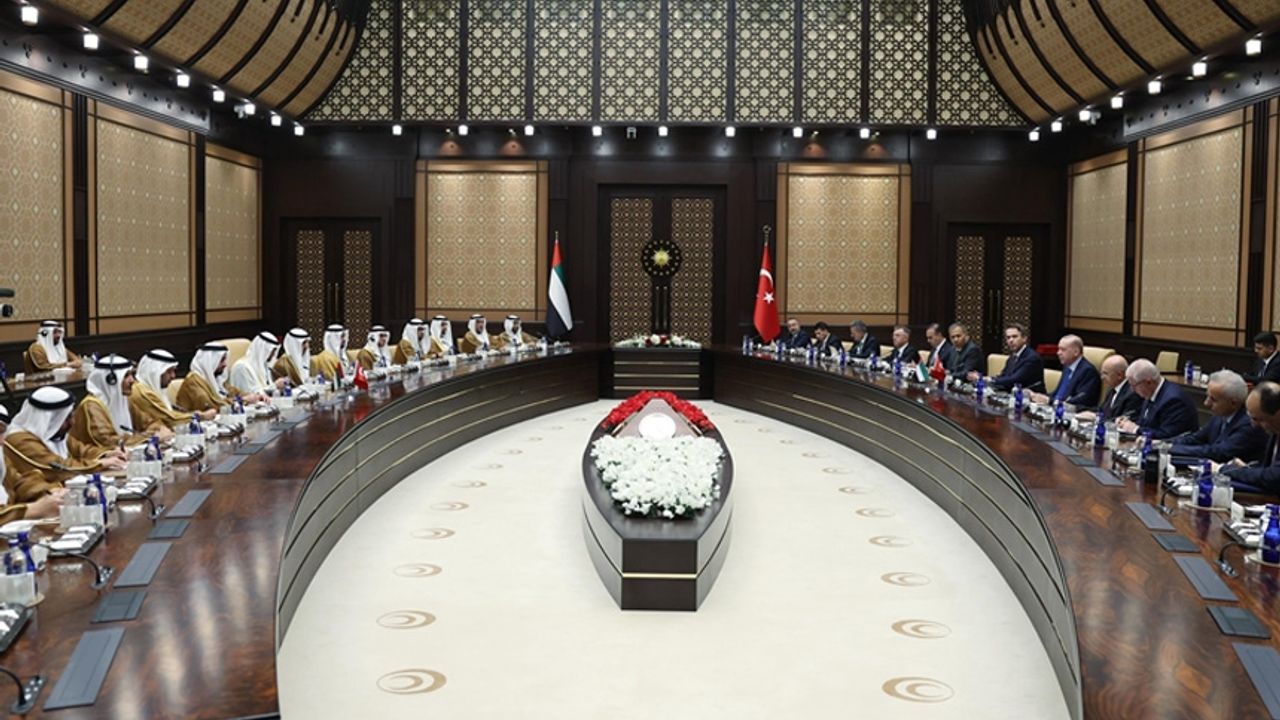 Ziyaretin ve bugünkü istişarelerin hayırlara vesile olmasını dileyen Cumhurbaşkanı Erdoğan, "2023 yılında Abu Dabi'ye yaptığım ziyarette değerli kardeşim Şeyh Muhammed bin Zayed ile temelini attığımız stratejik ortaklığımız hamdolsun hemen her alanda meyvelerini vermeye başladı. Ticaretten altyapıya, savunma sanayinden enerjiye, teknolojiden ulaştırmaya kadar her alanda ciddi mesafe kat ettik." ifadelerini kullandı.