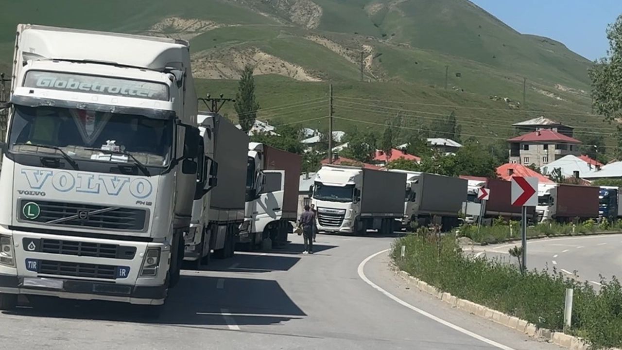 Esendere Gümrük Kapısı'nda bekleyen tırların oluşturduğu kuyruk, yaklaşık 2 kilometreye ulaştı. Tır sürücüleri, Esendere Gümrük Kapısı'ndan İran'a geçip yüklerini teslim etmek için sıra bekliyor.