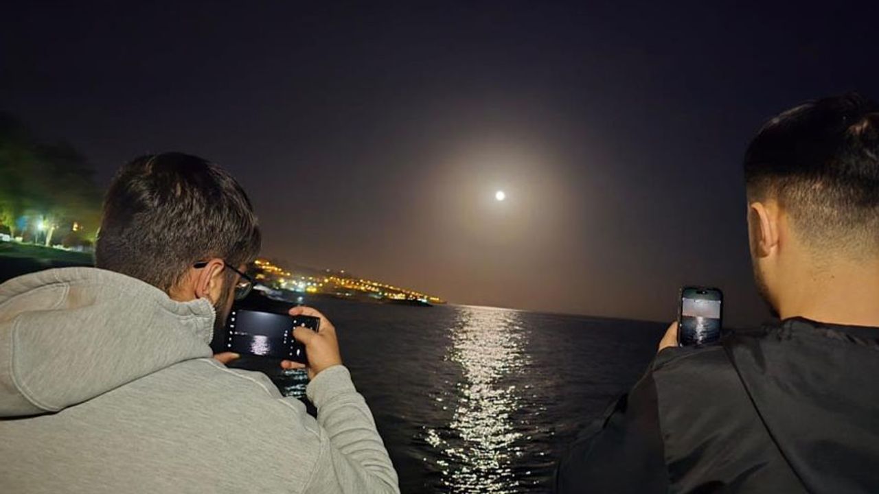 Van Gölü'nde dolunayın en güzel izlendiği yerlerden biri olan Ahlat iskelesi, bu muhteşem manzarayı görmek isteyen vatandaşlarla dolup taştı. Gökyüzünde tüm ihtişamıyla yükselen dolunay, Van Gölü'ne yansıyarak eşsiz bir ışık oyununa dönüştü.