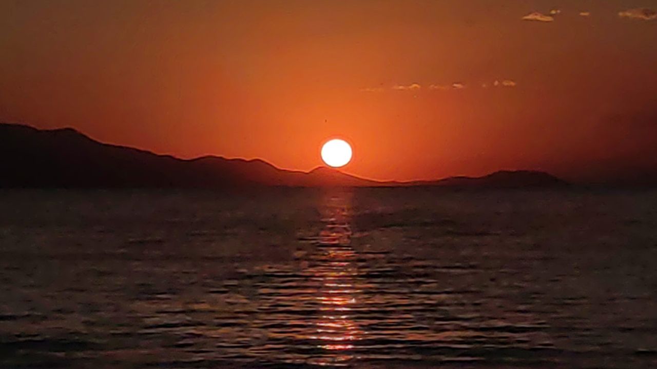 Akşam saatlerinde güneşin kızıl renklere bürünmesiyle gökyüzünün turuncudan kızıla uzanan renk cümbüşü, Van Gölü'nün sularına yansıyarak göl yüzeyinde adeta tablo gibi görüntüler ortaya çıkardı. Sahil kenarında gün batımını izleyen vatandaşlar, bu eşsiz manzarayı cep telefonlarıyla görüntüleyerek kaydetti.