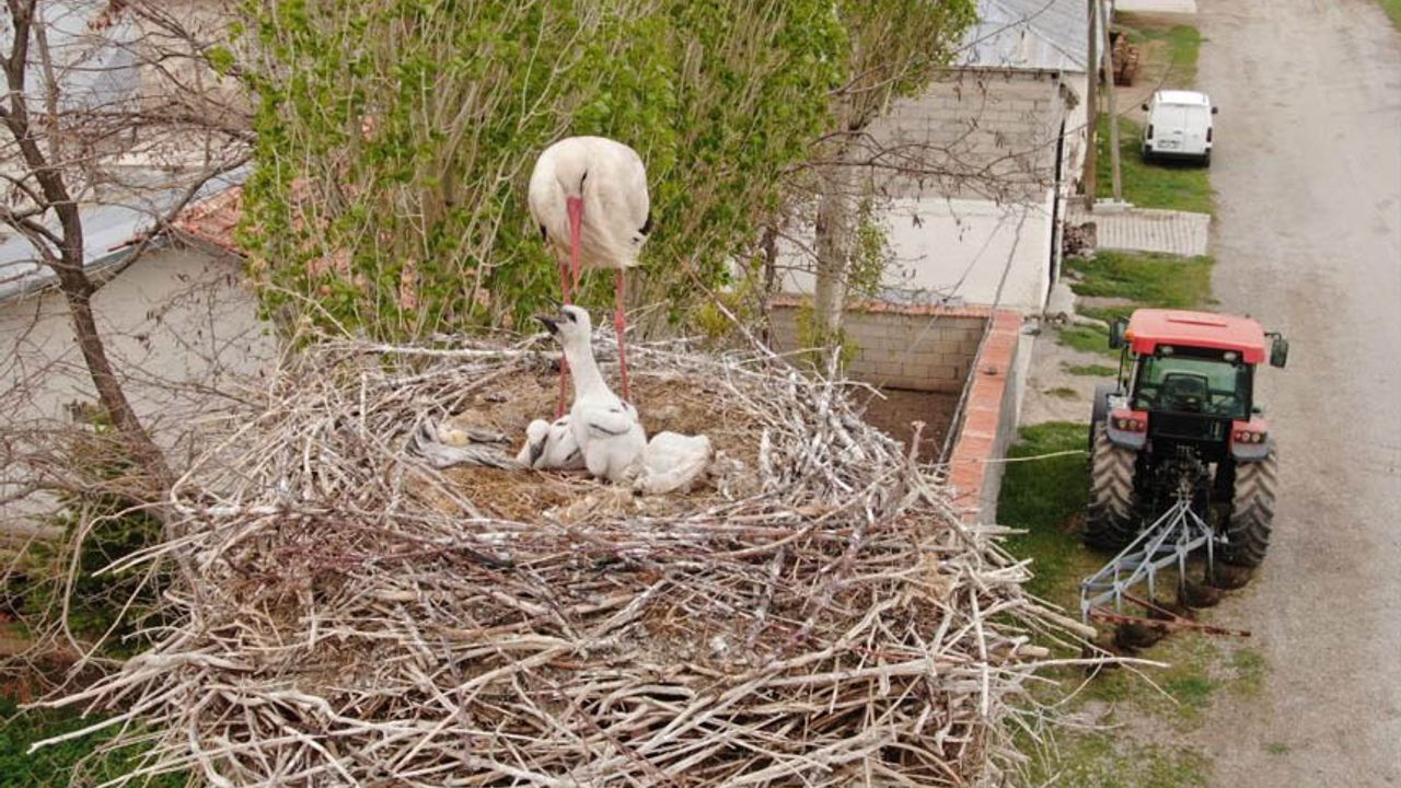 Yaklaşık 48 yıldır aynı direkte ki yuvalarına konakladıklarını ifade eden mahalle sakinlerinden Ahmet Genel, "Misafirlerimiz 1977 yılından beri hiç eksik olmuyorlar. Köyün nüfusu azalmasına rağmen leyleklerimiz aynı sayıda gelirler, çoğalırlar, sonbaharda da Afrika'ya doğru yol alırlar. Şu anda ilkbahar dönemi olduğu için yavrulama dönemi. 3 yavru var. Az önce uçurduğumuz dronla yapılan takipte muhtemelen bir yavrumuz kayıp, öldü. Şuan 2 yavru sağlıklı bir şekilde yuvada. Dişi leylek muhtemelen yem toplanmaya gitti. Yem toplama aşağıdaki göletin kenarından kurbağalardan oluşuyor" dedi.