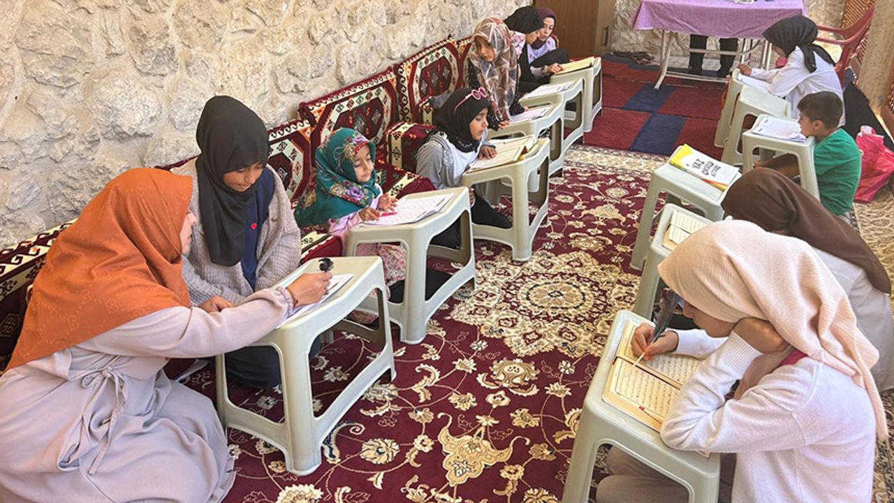 Türkiye genelinde olduğu gibi Van'da da okulların tatile girmesiyle birlikte başlayan yaz Kur'an kurslarına çocuklar yoğun ilgi gösteriyor. İpekyolu Müftülüğüne bağlı tarihi Hüsrev Paşa Camii'nde verilen kurslarda çocuklar hem dini bilgilerle donatılıyor hem de sanatla buluşuyor.