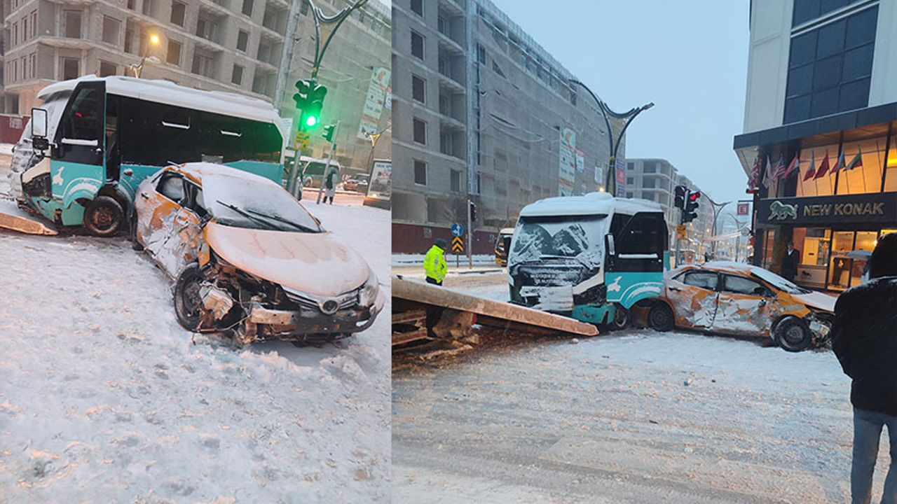 İkinisan Caddesi ile Cumhuriyet Caddesi’ni birbirine bağlayan kavşakta, plakaları ve sürücü isimleri henüz öğrenilemeyen mavi renkli halk otobüsü ile ticari taksi bilinmeyen bir nedenle çarpıştı.