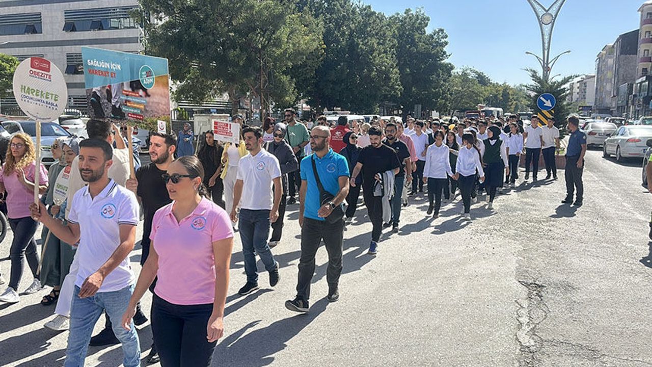 İlçe Sağlık Müdürlüğü binası önünde bir araya gelenler, "Hareket et, doğru beslen, sağlıklı yaşa" temasıyla gerçekleştirilen yürüyüşle Hükümet Konağı'na kadar yürüdü.