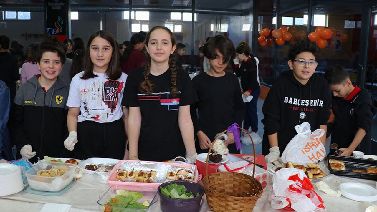 Çocuklar, evlerinden getirdikleri pasta, kek, tatlı, yöresel yemekler, süs eşyaları ve takıları kermeste satışa sundu.