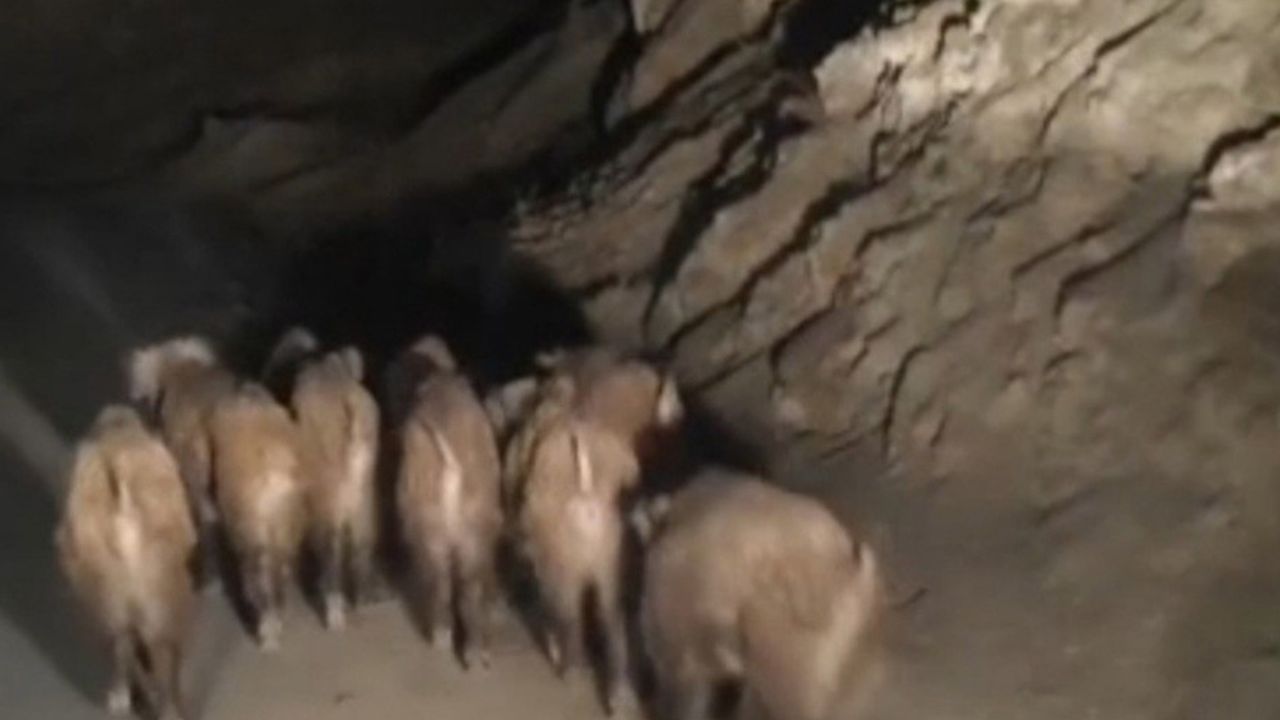 Mahallede ikamet eden Mustafa Özdemir, yolun kenarında yiyecek arayan sürüyü cep telefonu kamerasıyla görüntüledi. Yaklaşık 10 domuzun bulunduğu sürü, yolun karşısına geçtikten sonra gözden kayboldu.