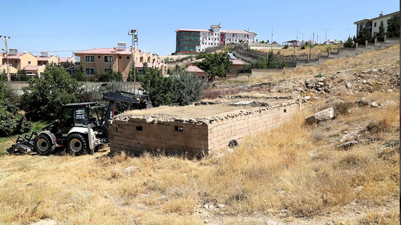 Zabıta ekipleri tarafından daha önce saha taramalarında tespit ve ardından tahliyesi yapılan yapılar iş makineleriyle yıktırılıyor.