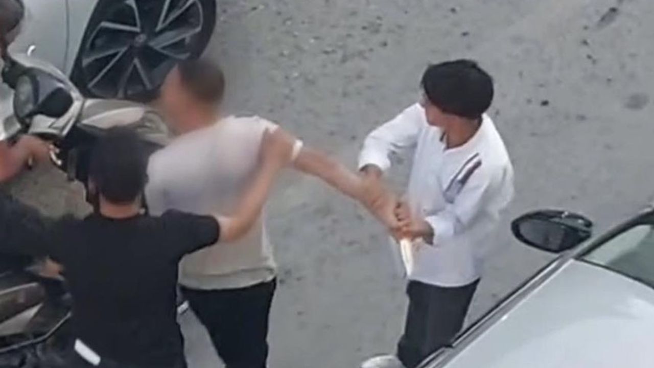 Araçların durmasıyla tartışma büyürken, otomobil sürücüsü elindeki bıçakla motosiklet sürücüsünü tehdit etti. Sürücünün ayrıca motosikletlinin kaskına tokat attığı anlar da cep telefonu kamerasına yansıdı. Çevredeki vatandaşların araya girmesiyle kavga sona ererken, otomobil sürücüsü aracına binerek olay yerinden uzaklaştı.