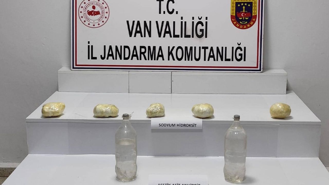 Van İl Jandarma Komutanlığı ekipleri, uyuşturucu tacirlerine yönelik çalışmalarını aralıksız sürdürüyor. Çalışmalar çerçevesinde Narkotik Suçlarla Mücadele Şube Müdürlüğü, Kaçakçılık ve Organize Suçlarla Mücadele Şube Müdürlüğü, İstihbarat Şube Müdürlüğü, Başkale İlçe Jandarma Komutanlığı ve Başkale Komando Tabur Komutanlığı tarafından Esenyamaç Mahallesi mevkisinde icra edilen operasyonda 4 kilo 580 gram asetik asit anhidrit olduğu değerlendirilen madde ile 3 kilo 88 gram sodyum hidroksit maddesi ele geçirilerek muhafaza altına alındı. Şüpheli hakkında adli işlem yapıldı.