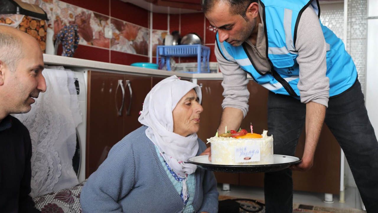 Bu kapsamda Engelli ve Yaşlı Hizmetleri Dairesi Başkanlığı ekipleri, İpekyolu ilçesi Esenler Mahallesi’nde yalnız yaşayan Besra Artin’i doğum gününde ziyaret etti.