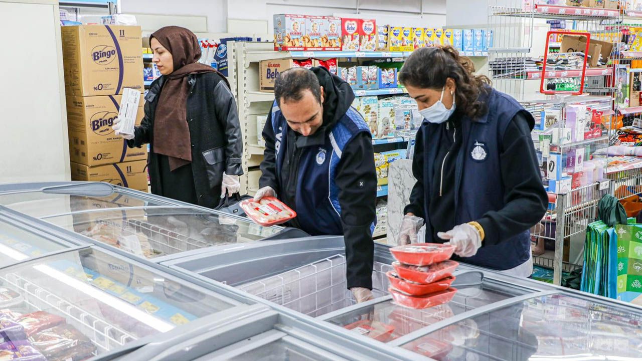 Denetimlerde, ürünlerin son kullanma tarihleri tek tek kontrol edilirken, reyonlardaki fiyat etiketleri ile kasa fiyatları arasında uyum olup olmadığına da bakılıyor.