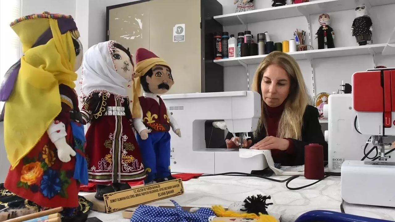 Kültürü yaşatmak için kursiyerlerine eğitim veren Şahar, AA muhabirine, kentin tarihini ve kültürünü tanıtmak amacıyla Van temalı geleneksel giysili bez bebekler yaptığını söyledi.