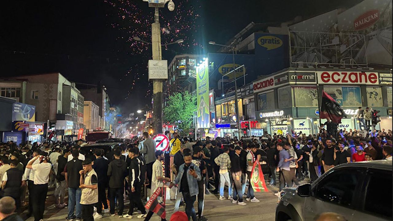 Türkiye 2'nci Lig play-off yarı final rövanş maçında karşı karşıya gelen Çimentaş Elazığspor ile Artı Değer Vanspor FK maçının tatil edilmesinin ardından Van'da Vanspor taraftarları caddelerde sevinç gösterileri yaptı.