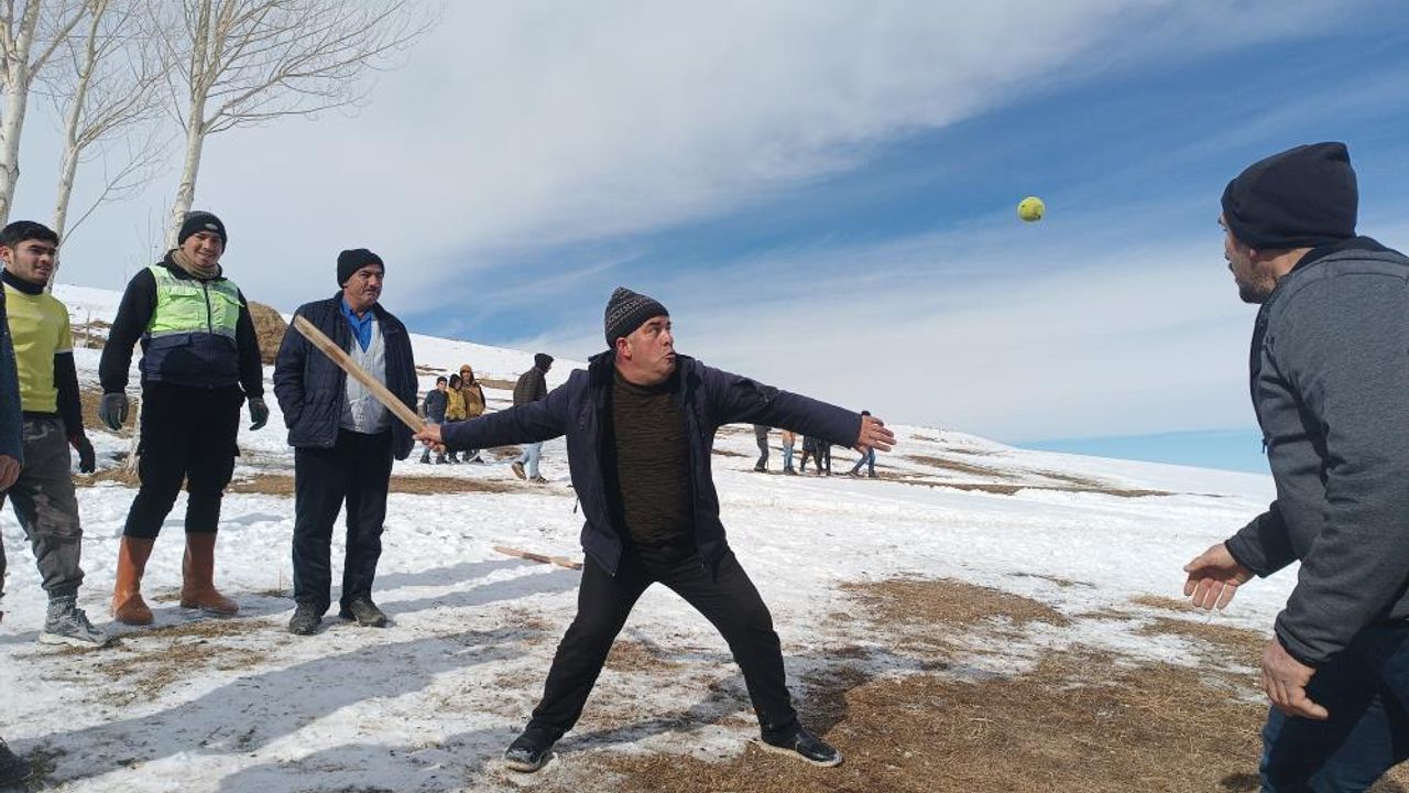 Van'ın Saray ilçesine bağlı Keklikdüzü Mahallesi sakinleri, kış günlerini dedelerinden miras kalan ve beyzbola benzerliğiyle bilinen "topa şeko" oyununu oynayarak boş zamanlarını değerlendiriyor.