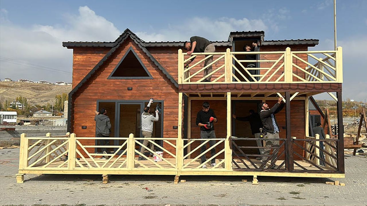 Van'ın Erciş ilçesinde Erhan ve Veysel Durmaz kardeşler, ürettikleri çevreyle uyumlu doğal ahşap ev ve bungalovları birçok ildeki müşterilerine satıyor.